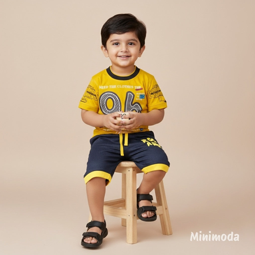 Refresh your little one’s summer style with this boys' light blue t-shirt and deep blue half pant set, a perfect mix of cool tones and comfortable design. Made from 100% breathable cotton, this 2-piece outfit is great for daily wear, outdoor activities, playdates, and vacations. The soft light blue tee offers a calm, breezy vibe, while the deep blue shorts provide a classic contrast. A stylish and practical addition to any toddler’s wardrobe.